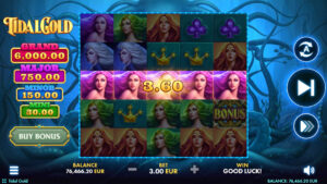 Tidal Gold immerses players in a mesmerizing underwater world filled with ancient power and hidden riches. Set beneath glowing ocean depths, the game surrounds the reels with swirling currents, soft blue light, and an atmosphere of mystery and magic.